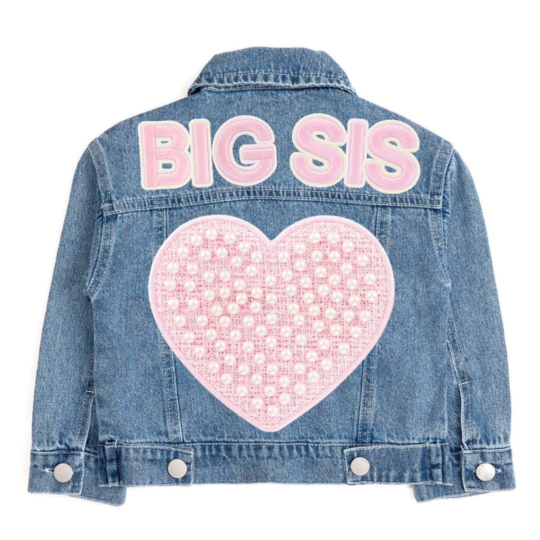 Big Sis Pearl Heart Patch Denim Jacket