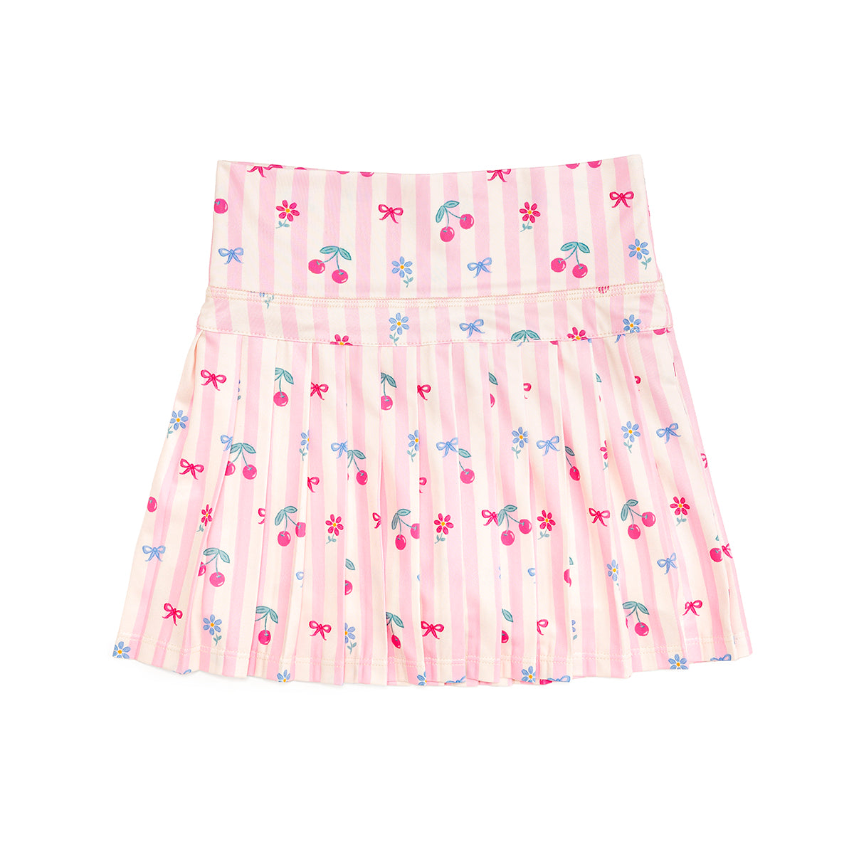 This Cherry Bow Athletic Skort from Sweet Wink brings a fresh, playful twist to classic sporty style. Designed with soft pink stripes accented by delicate cherries and dainty bows, this athletic skort blends comfort and charm for everyday wear. Pair it with our Cherry Good Day Short Sleeve T-Shirt for an effortlessly coordinated outfit that’s perfect for warm weather adventures, birthday parties and picture perfect days.