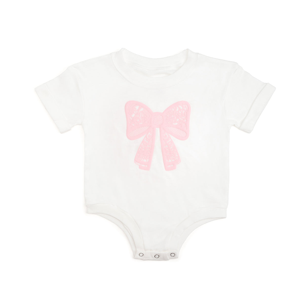 Pretty in pink and full of charm, this Lace Bow Puff Ink Romper from Sweet Wink is an instant favorite for your littlest love. Featuring a big soft pink lace-inspired bow design with a subtle puff ink texture, this romper adds beautiful dimension and sweetness while staying cozy and baby-friendly. Designed for easy, all-day wear, it’s perfect for cuddles, milestones, Valentine’s celebrations, and everyday moments you’ll want to remember.