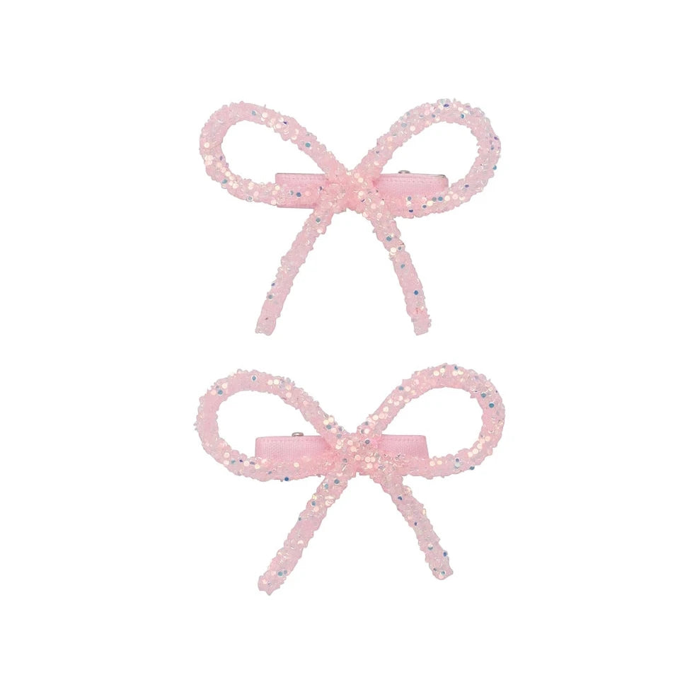 Light Pink Mini Glitter Bow Clips (Set of 2)