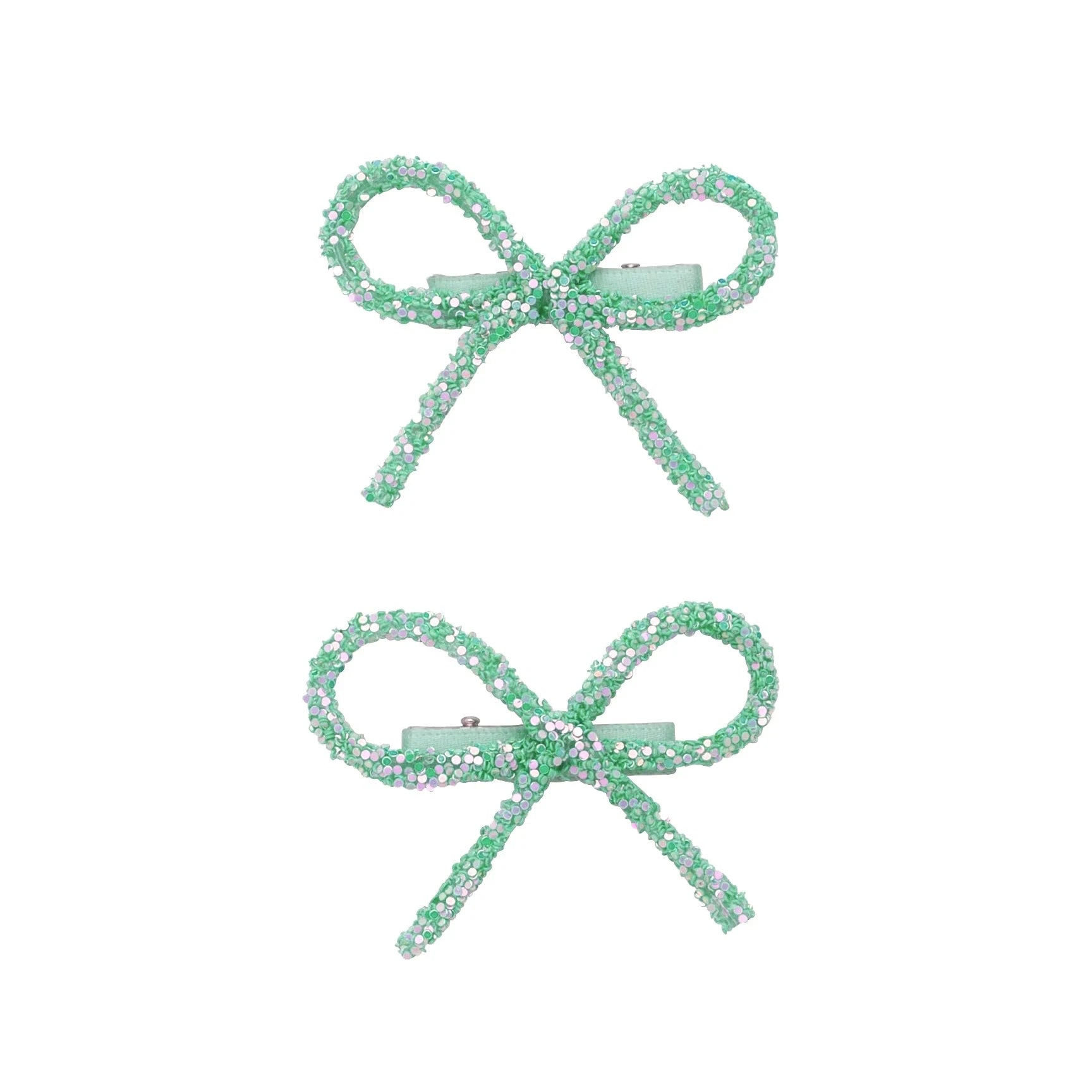 Light Turquoise Mini Glitter Bow Clips (Set of 2)